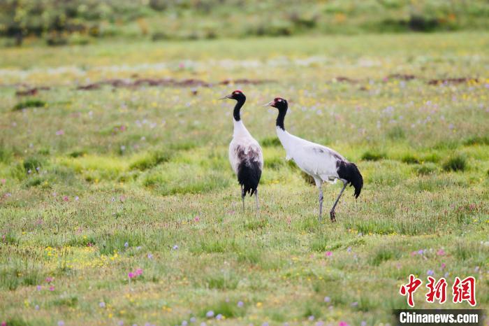 圖為(wei) 瑪可河國家濕地公園內(nei) 的黑頸鶴。班瑪縣委宣傳(chuan) 部 供圖