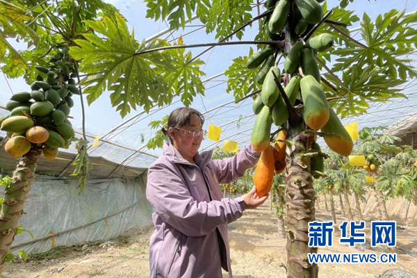 (資料圖)農(nong) 戶查看特色種植水果的長勢。新華網發