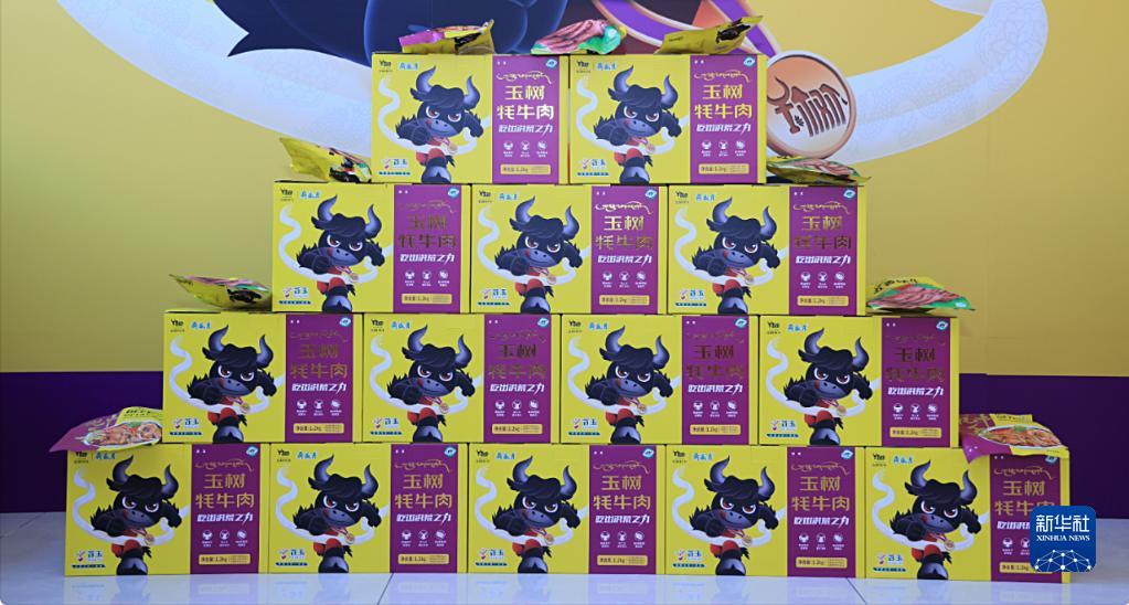產(chan) 自海拔4000多米的玉樹犛牛,由北京老字號月盛齋製成五香犛牛肉、紅燒犛牛腱、香辣犛牛雜等食品,令人眼前一亮。