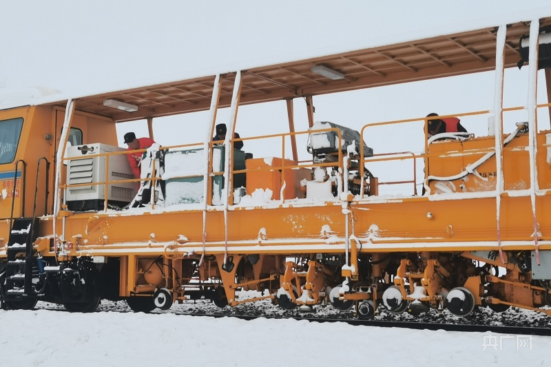 昆侖(lun) 山上,氣溫驟降,多處施工現場被大雪覆蓋,一片白雪皚皚。為(wei) 確保施工順利進行,近日,西寧工務機械段維修三車間的職工們(men) 開啟了對青藏鐵路格拉線望昆——昆侖(lun) 山區間大機搗固施工作業(ye) 。西寧工務機械段維修三車間主任王海峰在施工作業(ye) 前,帶領車間職工清理積雪,同時對低溫狀態易發生故障的作業(ye) 裝置進行針對性保養(yang) 。“注意腳下積雪濕滑,扶穩抓牢,保證自身人身安全。”車間副主任張小波提醒說。