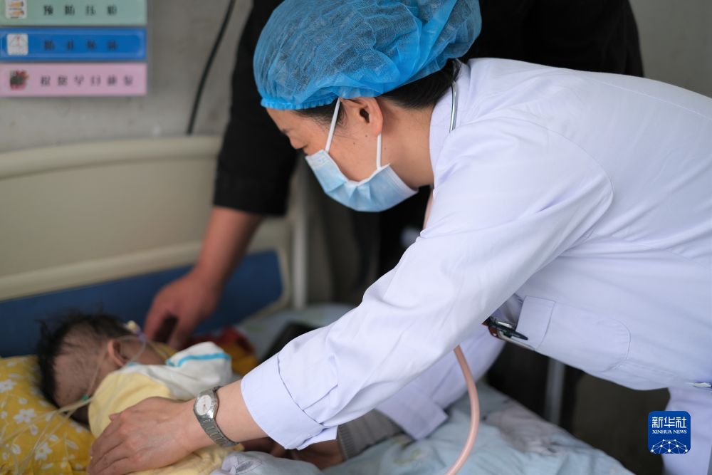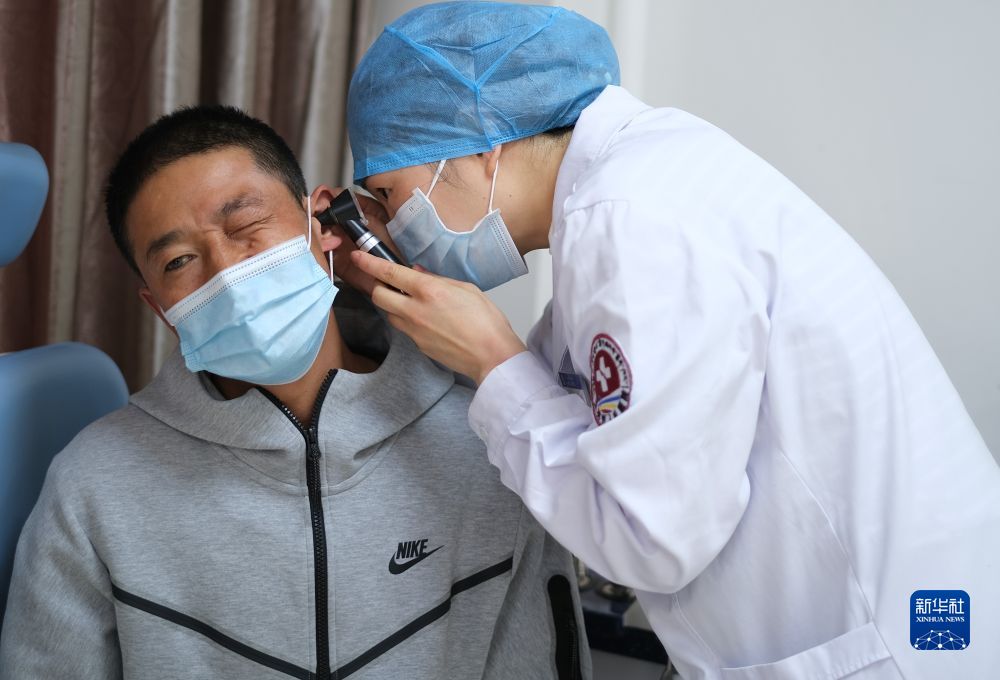 青海省婦女兒(er) 童醫院醫生、青南支醫隊員孫敬在玉樹藏族自治州人民醫院給患者檢查身體(ti) 。新華社記者 韓方方 攝