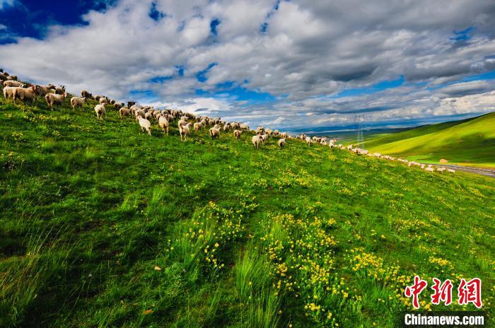 圖為(wei) 天峻縣境內(nei) 的草場上羊群在奔跑。天峻縣委宣傳(chuan) 部 供圖