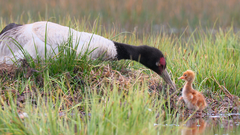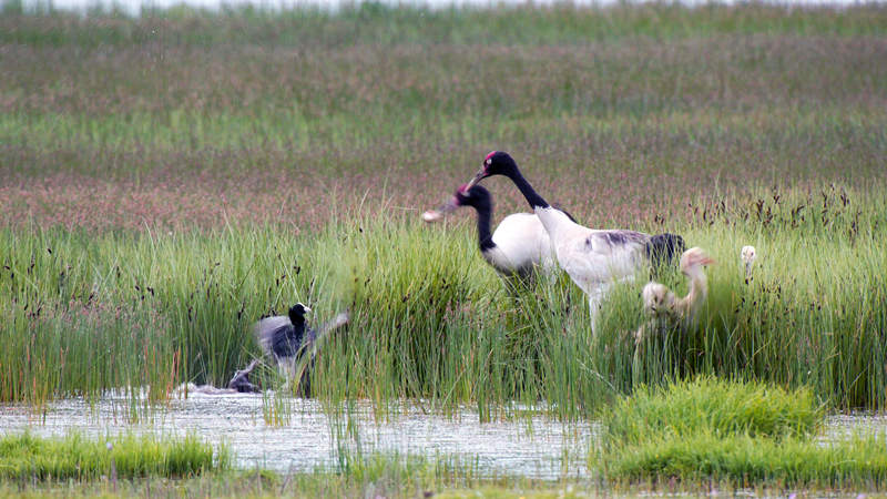 祁連山國家公園裏黑頸鶴一家的幸福生活