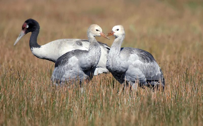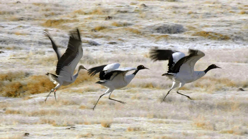 黑頸鶴驅逐闖入領地的其他鳥類。張景元 攝