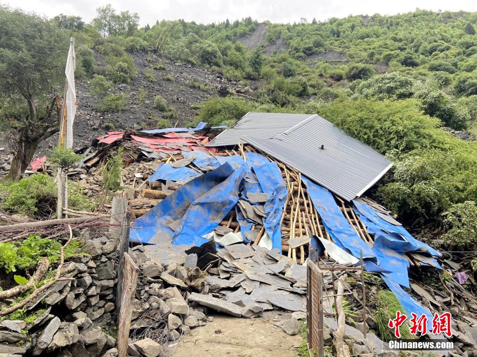 馬爾康市草登鄉(xiang) 科拉機村在地震中倒塌的房屋。 四川森林消防 供圖