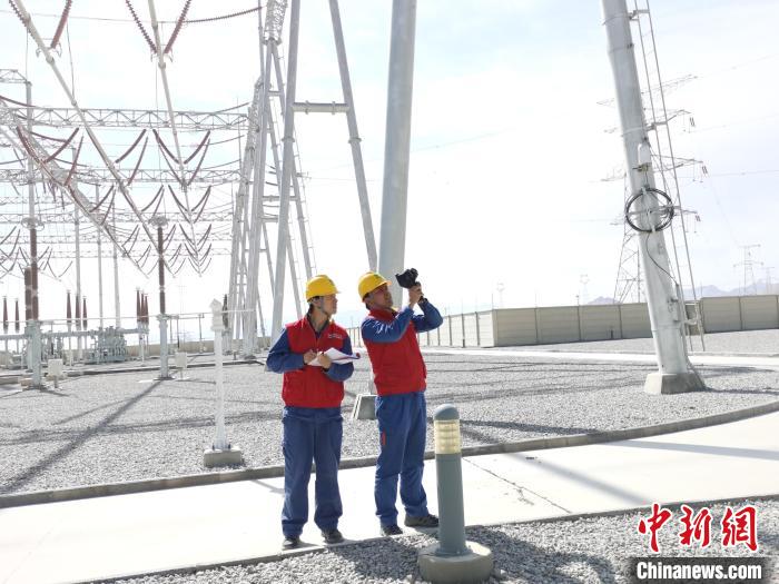 圖為(wei) 國網青海超高壓公司格爾木運維分部專(zhuan) 業(ye) 人員全力以赴做好電網保電工作。趙旻珺 攝