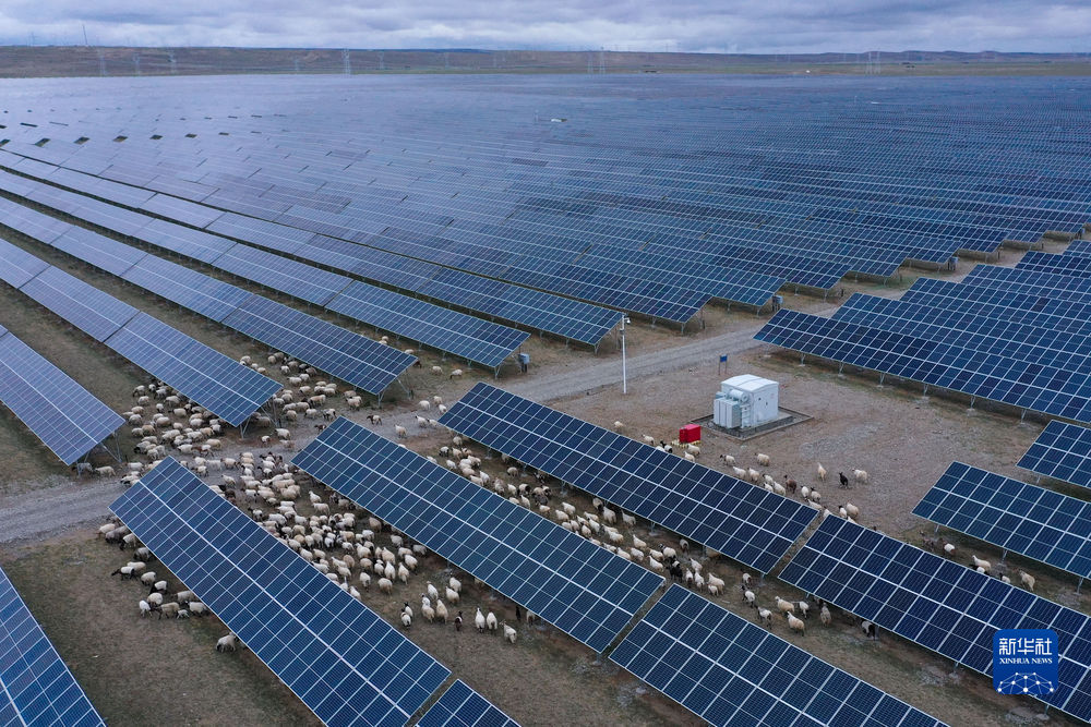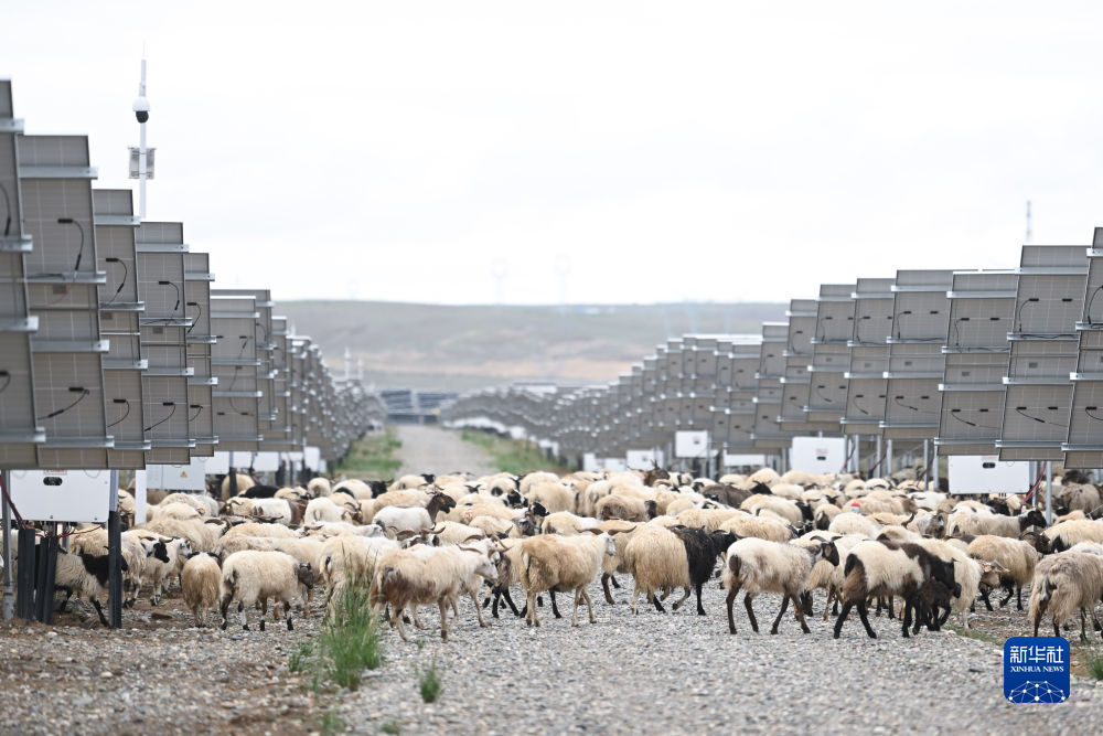 6月9日,一群羊在塔拉灘華能青海公司光伏電站內(nei) 活動。新華社記者 駱曉飛 攝