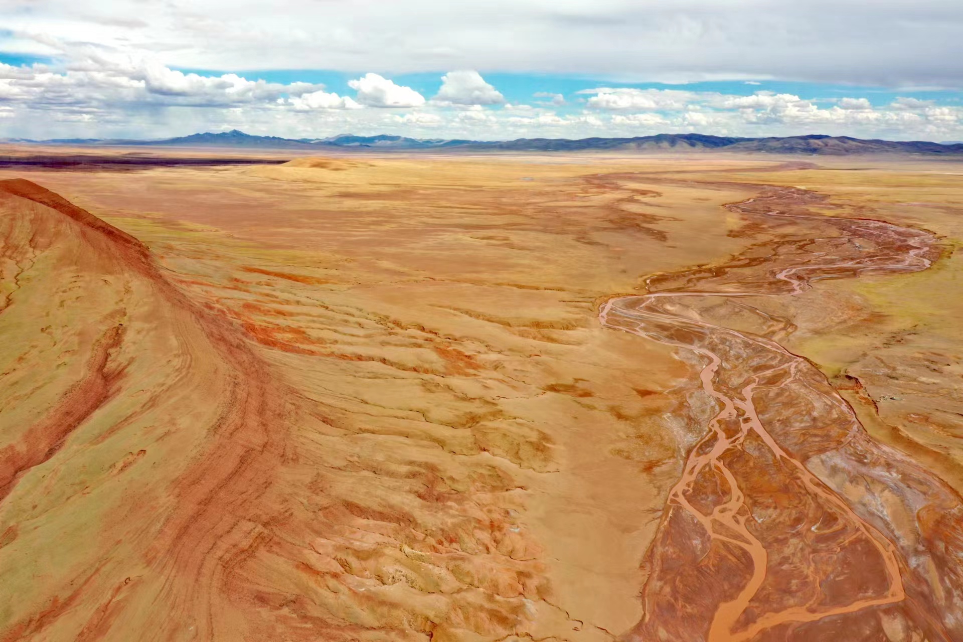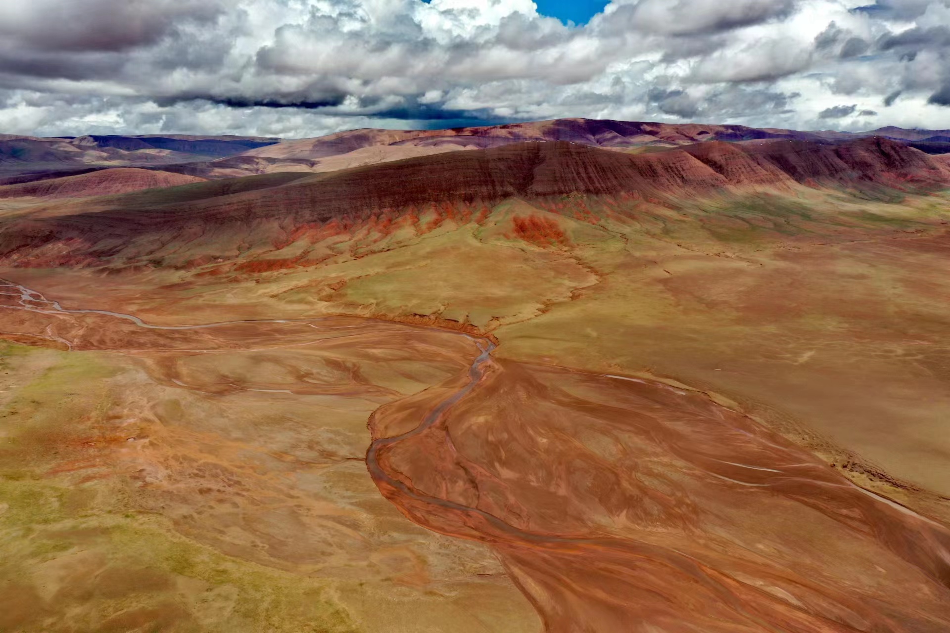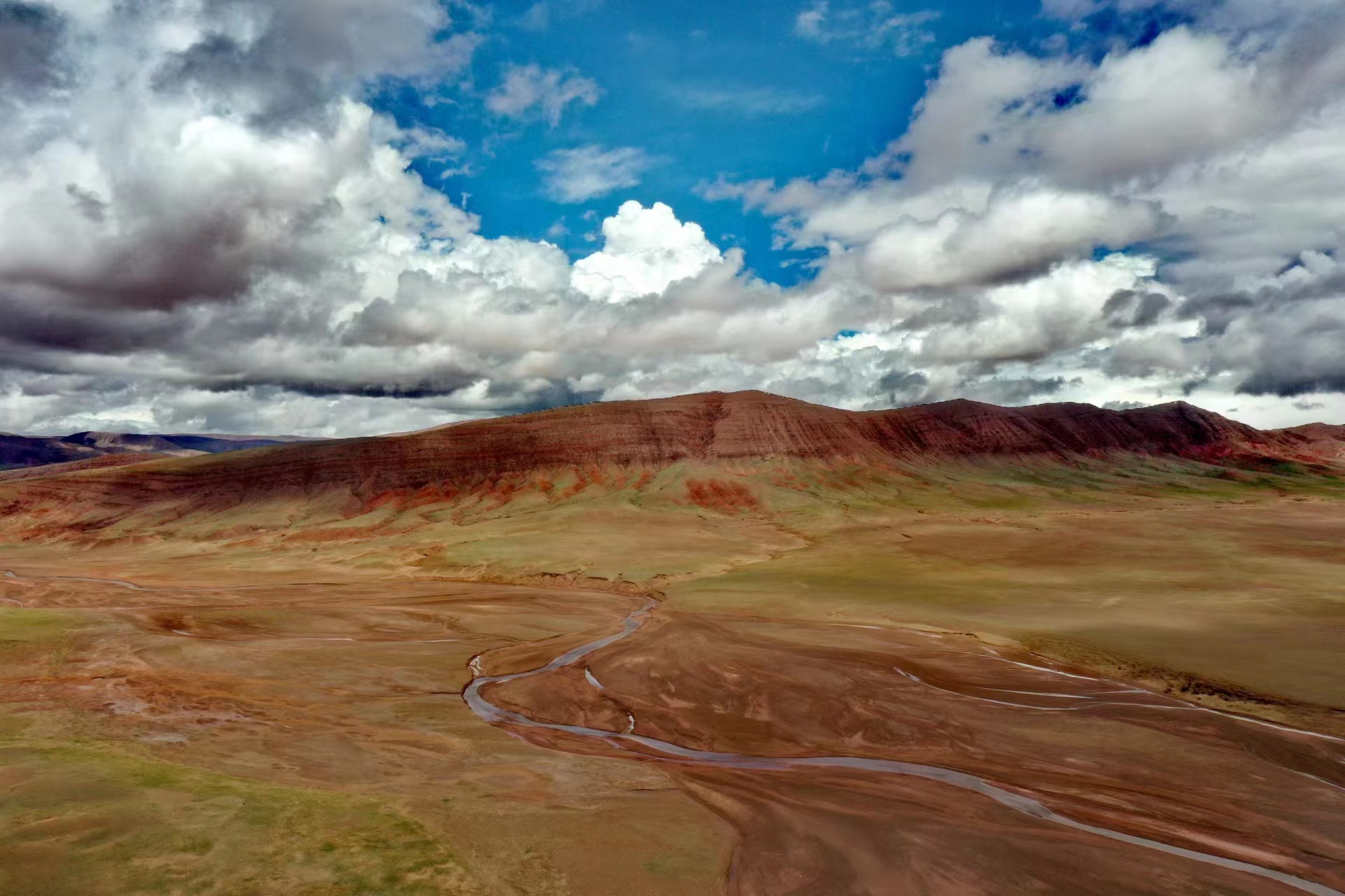 近日,中國地質大學(武漢)長江科考先遣隊員張永一行進行綜合科學考察時,在青藏公路日阿尺曲一帶發現一條紅色山脈,是青藏高原109國道沿線一處壯觀的地質遺跡。該山脈由晚白堊紀鈣質膠結的粉、細砂岩與(yu) 古近紀紫紅色、磚紅色複成份礫岩所組成,呈近東(dong) 西走向,兩(liang) 坡不對稱,南陡北緩,地層剖麵出露清楚。