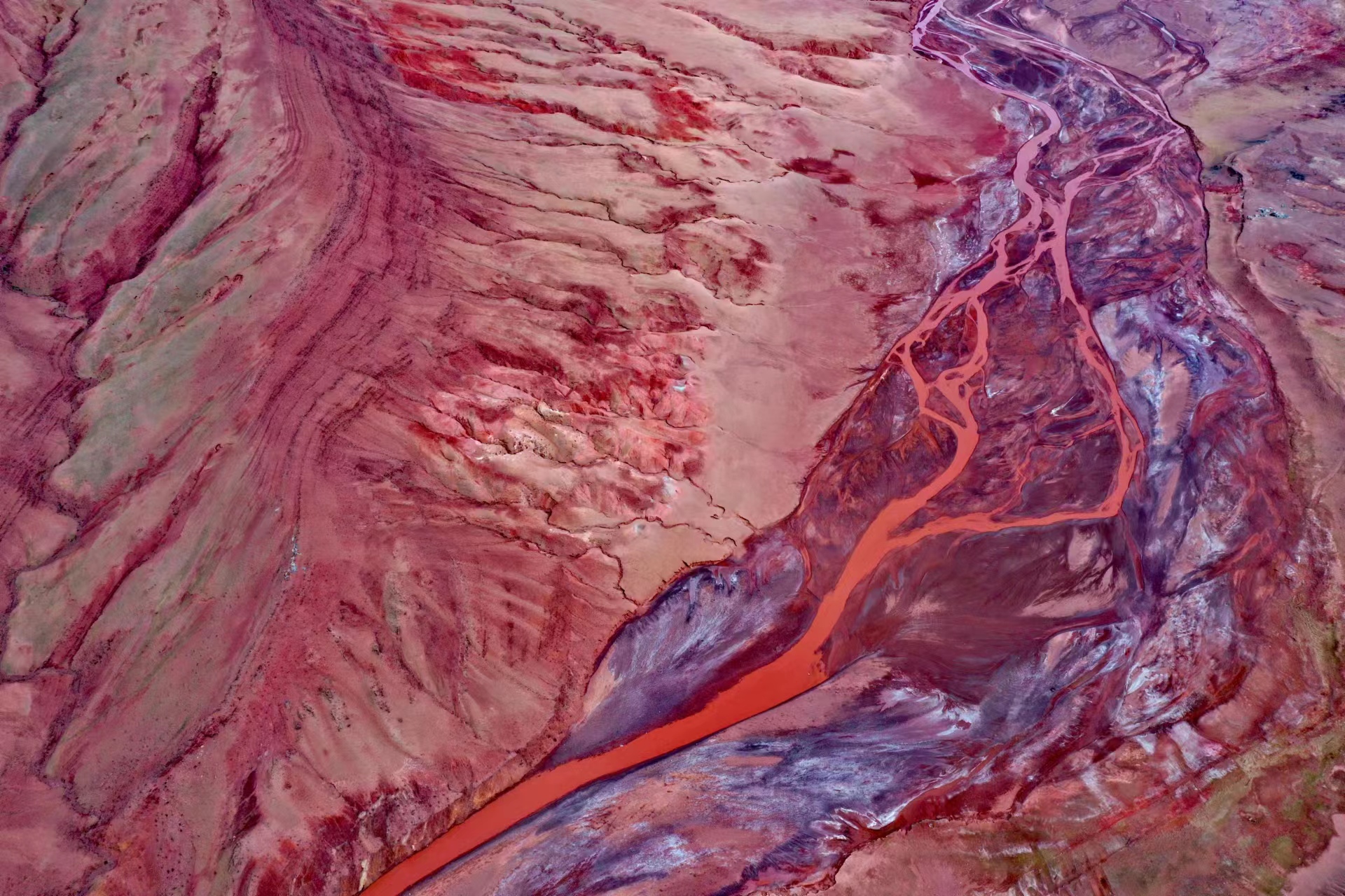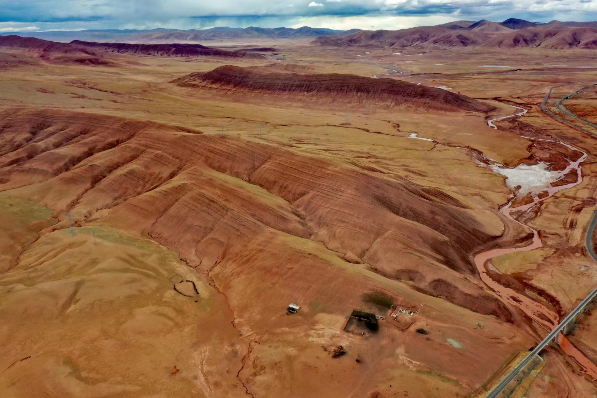 青藏公路日阿尺曲一帶發現的紅色山脈。張永攝