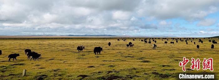 圖為(wei) 犛牛在草原上悠閑自得。李江寧 攝