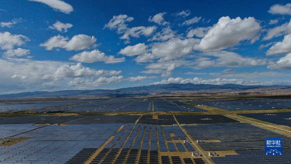 這是6月26日在青海省海南藏族自治州共和縣拍攝的光伏電站(無人機照片)。新華社記者 張龍 攝