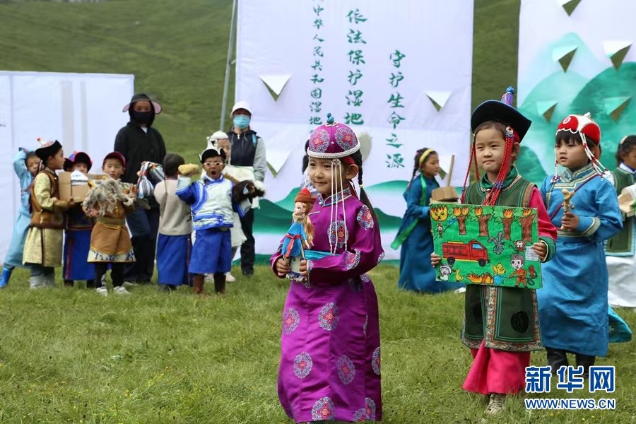 自2019年起,青海洮河源國家濕地公園每年夏季都會(hui) 組織周邊幼兒(er) 園及中小學生開展科普教育活動,向學生們(men) 講授濕地基礎知識、了解植物和野生動物知識等,在體(ti) 驗自然奧秘和美麗(li) 的同時,培養(yang) 學生愛護環境、保護生態的意識。正值盛夏,這裏天空湛藍、水草豐(feng) 美。科普宣教員多傑康卓在給來自河南縣賽龍鄉(xiang) 中心寄宿製完全小學五年級的學生們(men) 上生態課。 “濕地被譽為(wei) ‘地球之腎’,是生物多樣性富集的生態係統和人類重要的生存環境之一,具有涵養(yang) 水源、淨化水質、維護生物多樣性等重要的生態功能。”多傑康卓給大家講授濕地環保知識,也與(yu) 學生們(men) 一同分享大家創作的環保主題作品。