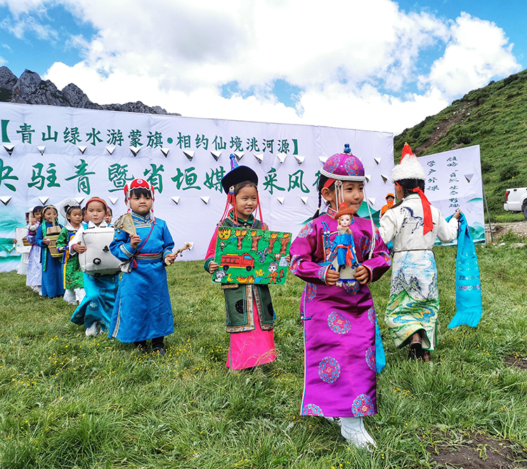 綠草如茵的大草原,成群的牛羊,清澈的洮河水,不時從(cong) 山頭飄過的朵朵白雲(yun) ,在這樣一副如畫的景色裏,河南縣中心幼兒(er) 園、賽龍鄉(xiang) 中心寄宿製完全小學的一堂戶外生態體(ti) 驗課正在這裏進行。