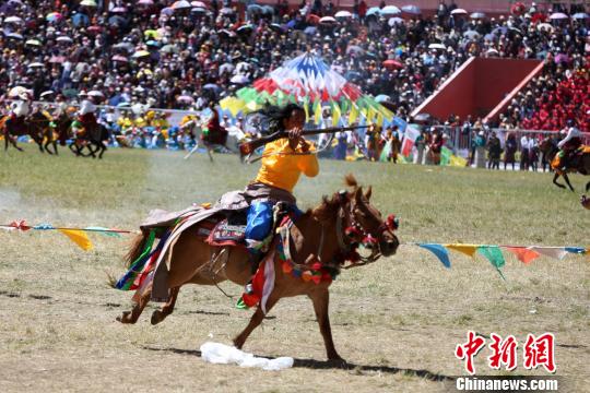 每年夏季,該縣各鄉(xiang) 村藏族民眾(zhong) 都會(hui) 舉(ju) 行精彩的賽馬、賽犛牛、背沙袋等民族傳(chuan) 統體(ti) 育賽事。