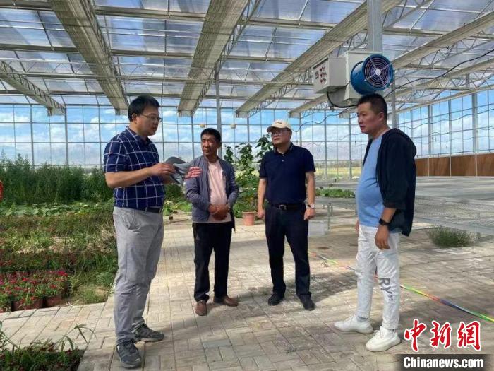 圖為(wei) 範丹(左一)在當地進行花卉種植產(chan) 業(ye) 指導。德令哈融媒體(ti) 中心 供圖
