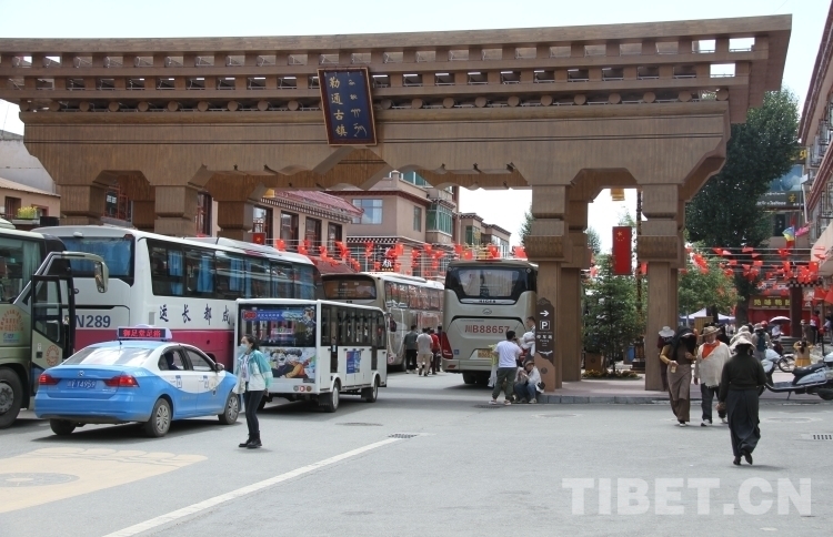 圖為(wei) 遊客湧入理塘縣勒通古鎮·千戶藏寨旅遊景區