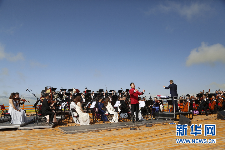 伴著祁連山下的微風,高原大地架起舞台,綠色的群山和金黃的油菜花地為(wei) 背景,觀眾(zhong) 徜徉在交響樂(le) 的柔波中……