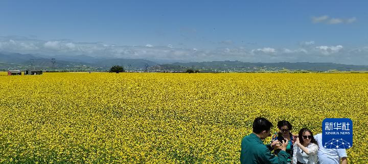 盛夏時節,從(cong) 青海省會(hui) 西寧出發,沿張汶高速公路驅車1個(ge) 多小時,就進入門源回族自治縣境內(nei) 。油菜花鋪展出“金色花海”,天地間融為(wei) 一幅濃墨重彩的天然畫卷。