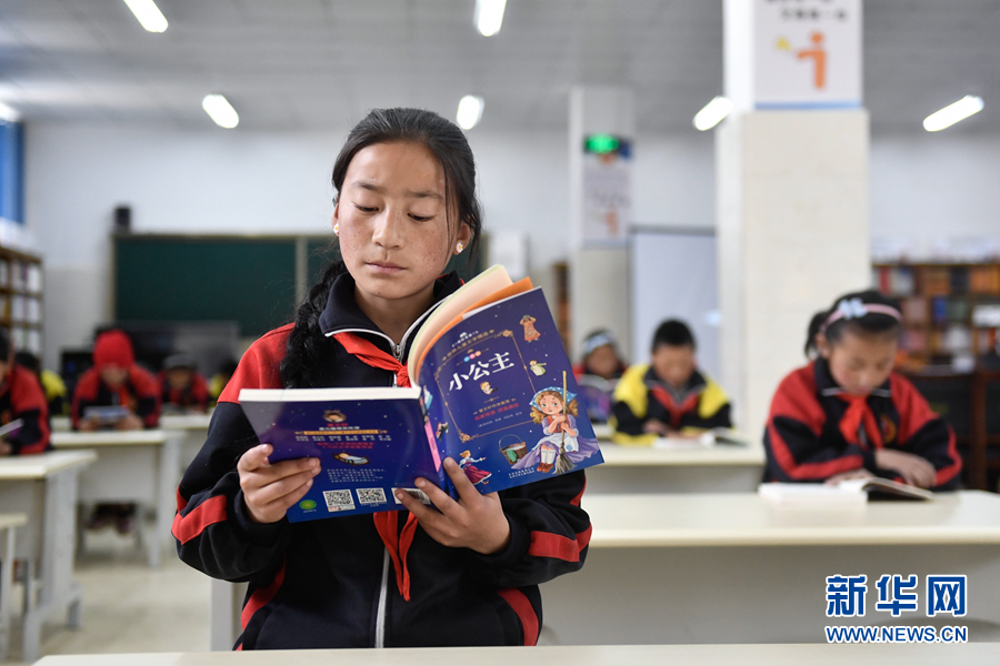 在果洛藏族自治州甘德縣崗龍鄉(xiang) 寄宿製中心小學,學生在上閱讀課。(資料圖)新華社記者 張龍 攝