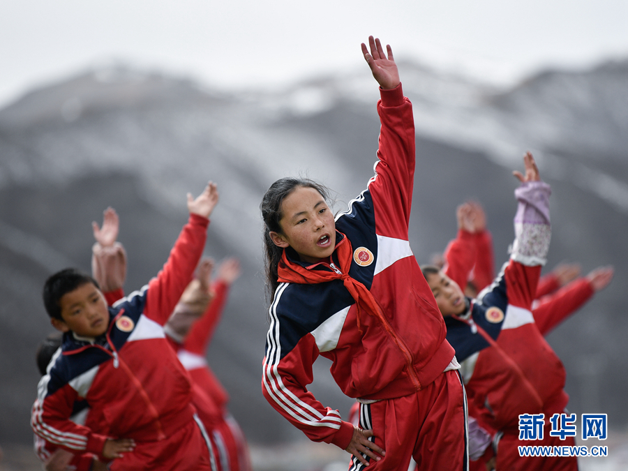 在果洛藏族自治州甘德縣下貢麻鄉(xiang) 寄宿製中心小學,學生在上體(ti) 育課。(資料圖)新華社記者 張龍 攝