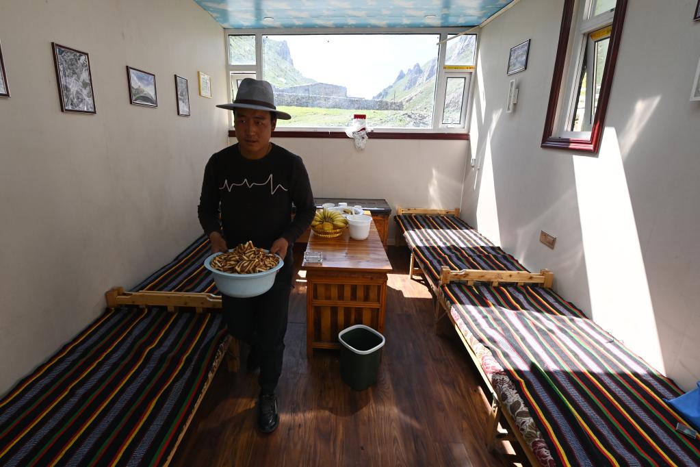 受新冠肺炎疫情影響,昂賽大峽穀自然體(ti) 驗項目去年暫停。今年7月8日,大峽穀自然體(ti) 驗活動重新開放預約,政府為(wei) 接待家庭提供了新的接待集裝箱。桑周置辦了新的床、被褥、桌子、爐子等,還貼上了藍天白雲(yun) 的壁紙。“馬上要接待新的體(ti) 驗者了,一定要讓他們(men) 有家的感覺。”看著收拾一新的“家”,桑周十分欣喜。