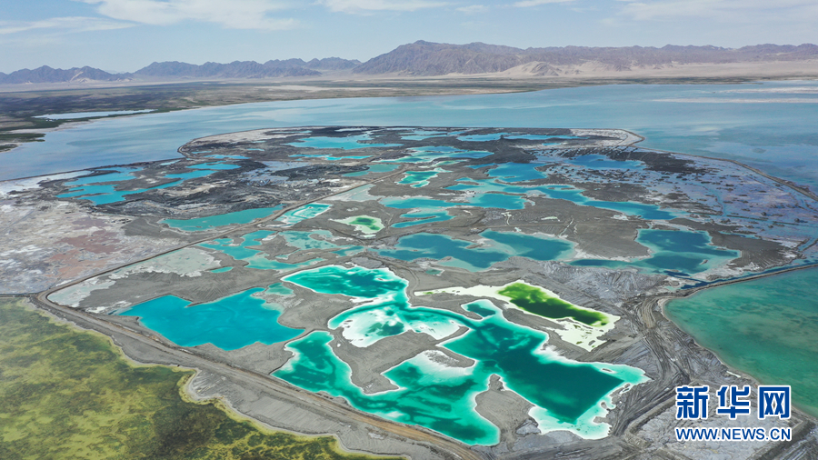 圖為(wei) 7月22日拍攝的海西州茫崖市境內(nei) 的翡翠湖。