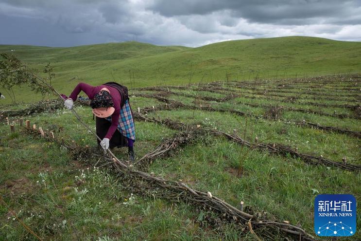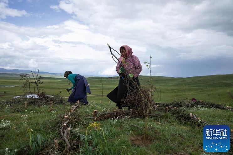從(cong) 五月底開始,四川省若爾蓋縣麥溪鄉(xiang) 黑河村村民在當地政府組織下,抓住雨水季節的有利時機,在草場開展防沙治沙工作。