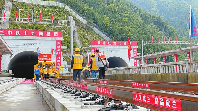 7月16日,鐵軌首次“爬”上川西高原。當天上午,成蘭(lan) 鐵路成川段(成都至蘭(lan) 州鐵路成都至川主寺黃勝關(guan) 段)躍龍門隧道內(nei) ,第一組500米長鋼軌穩穩落下,標誌著成蘭(lan) 鐵路成川段開始高原段鋪軌,全線建設進入攻堅階段。