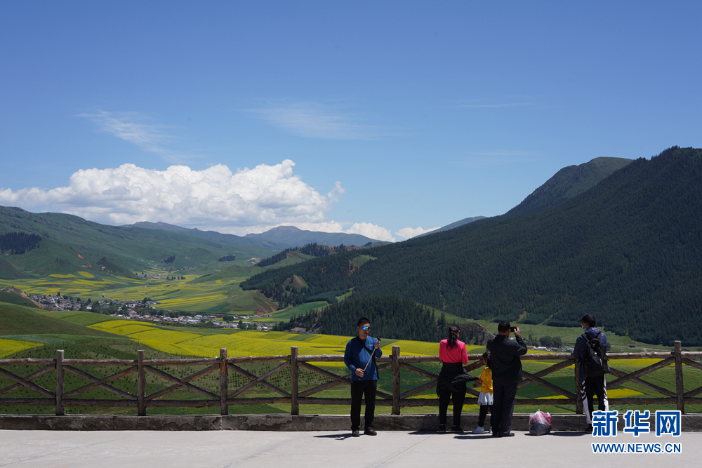 盛夏時節,青海省海北藏族自治州祁連縣的卓爾山景區綠意盎然,風景如畫。
