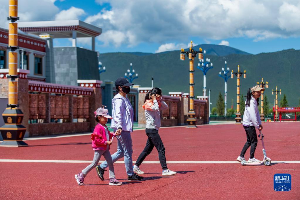 7月29日,人們(men) 在麗(li) 香鐵路香格裏拉站站前廣場遊玩。新華社記者 陳欣波 攝
