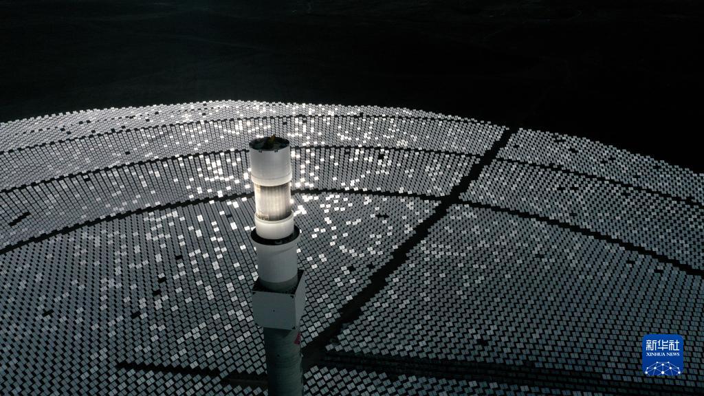 這是位於(yu) 青海省海南藏族自治州共和縣光伏產(chan) 業(ye) 園內(nei) 一處塔式光熱發電項目(2021年3月3日攝,無人機照片)。新華社記者 張宏祥 攝