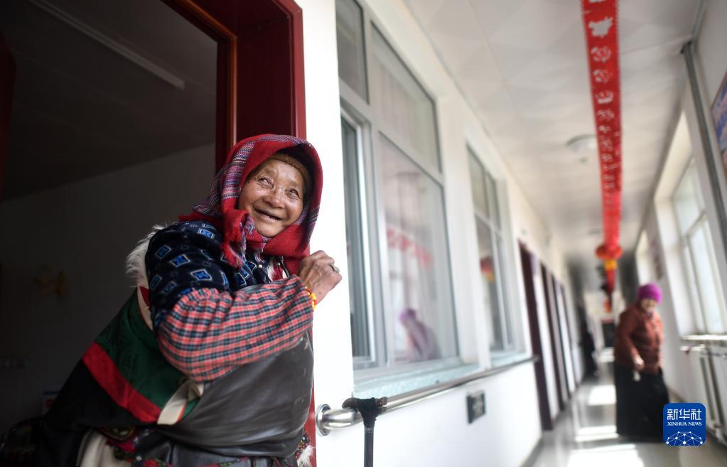 在青海省玉樹藏族自治州治多縣,提沙索忠老人在幸福敬老院內(nei) (2021年3月14日攝)。新華社記者 張宏祥 攝