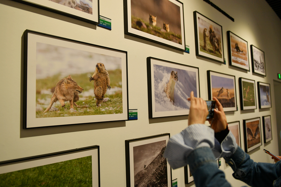 圖為(wei) 祁連山國家公園青海片區展陳中心內(nei) 展出的攝影作品。卡婭梅朵 攝