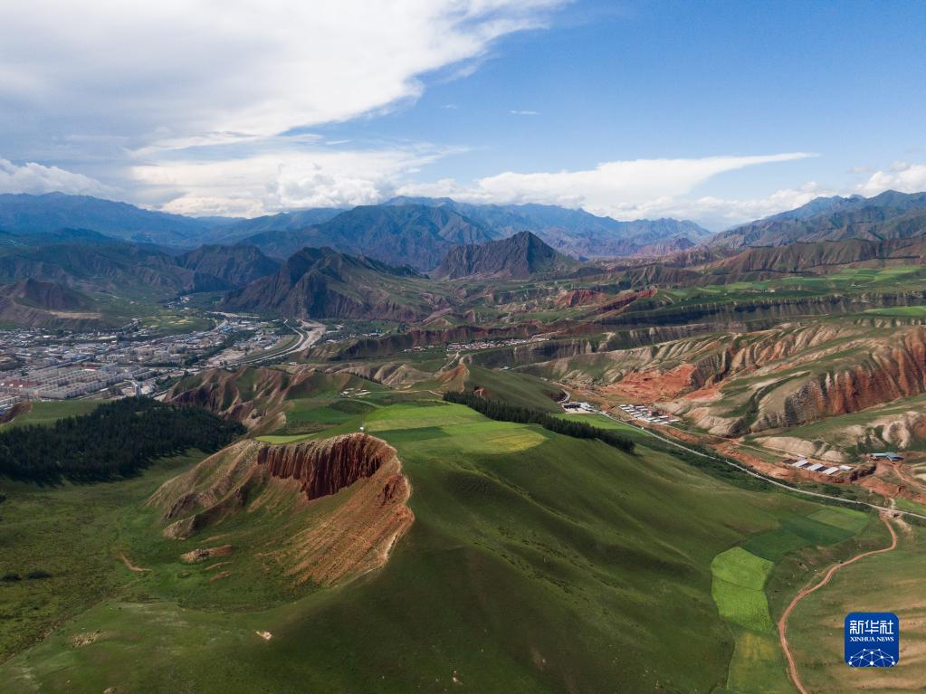 青海省海北藏族自治州祁連縣風光(8月10日攝,無人機照片)。新華社記者 張龍 攝