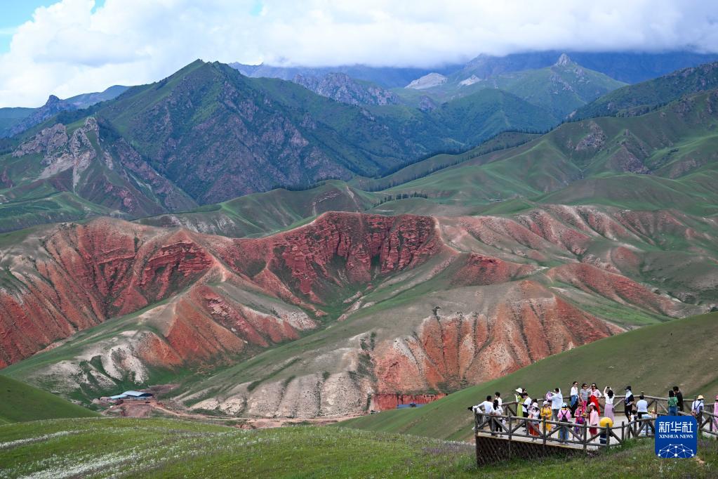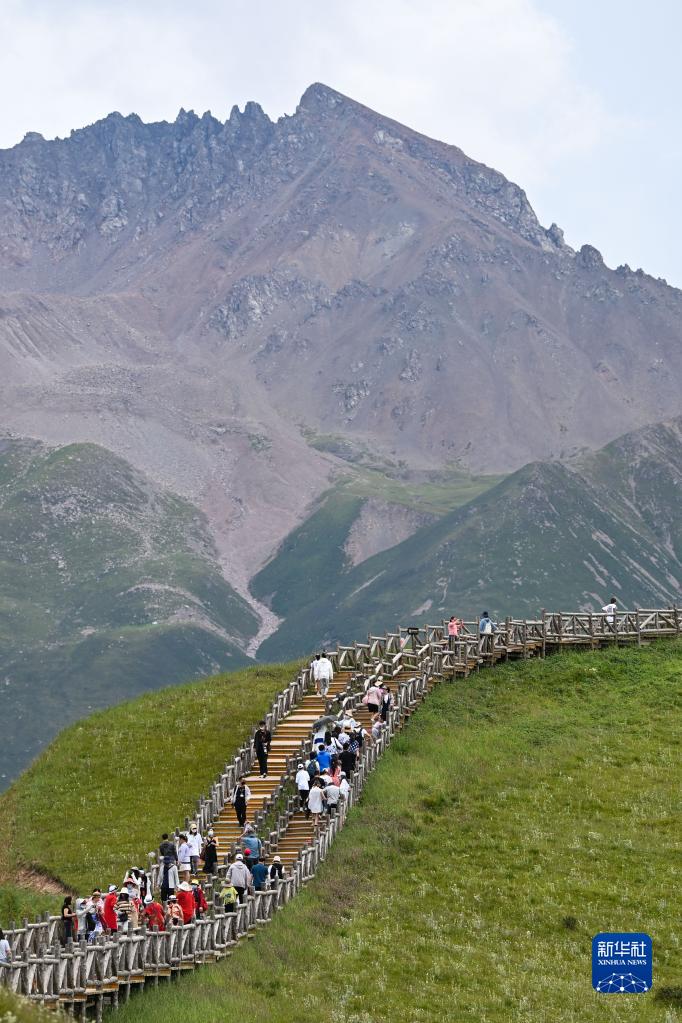 8月10日,遊客在青海省海北藏族自治州祁連縣卓爾山景區內(nei) 遊玩。新華社記者 張龍 攝