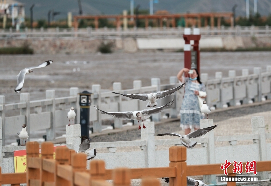 8月11日,青海省海北藏族自治州剛察縣,沙柳河國家濕地公園內(nei) 的大量水鳥吸引遊客。中新社記者 賈天勇 攝