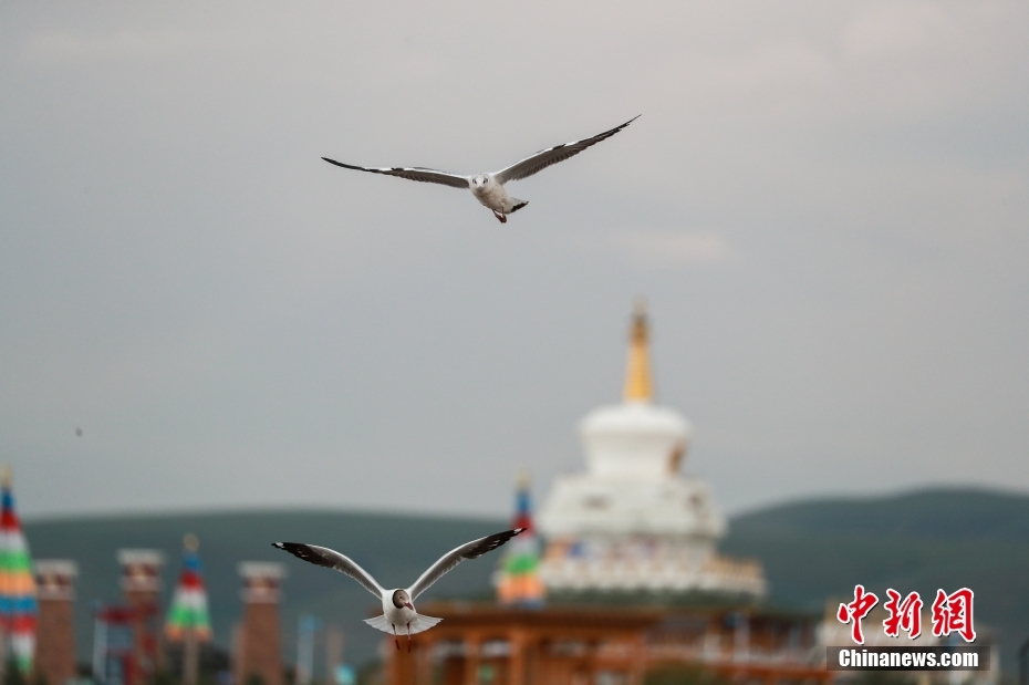 8月11日,青海省海北藏族自治州剛察縣,沙柳河國家濕地公園內(nei) 的水鳥自由飛翔。中新社記者 賈天勇 攝