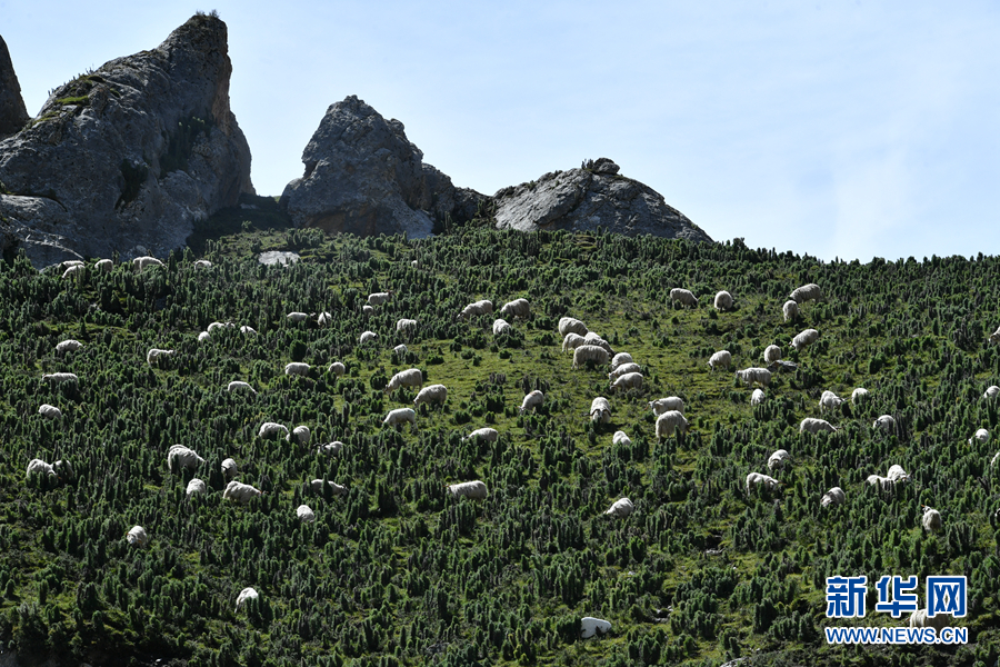 遍山的羊群在天峻溝內(nei) 吃草。新華網 卡婭梅朵 攝