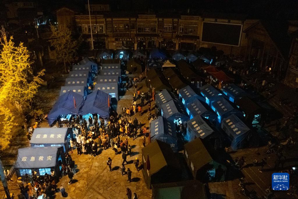 9月5日晚拍攝的四川甘孜州瀘定縣磨西鎮的受災群眾(zhong) 臨(lin) 時安置點。新華社 沈伯韓 攝