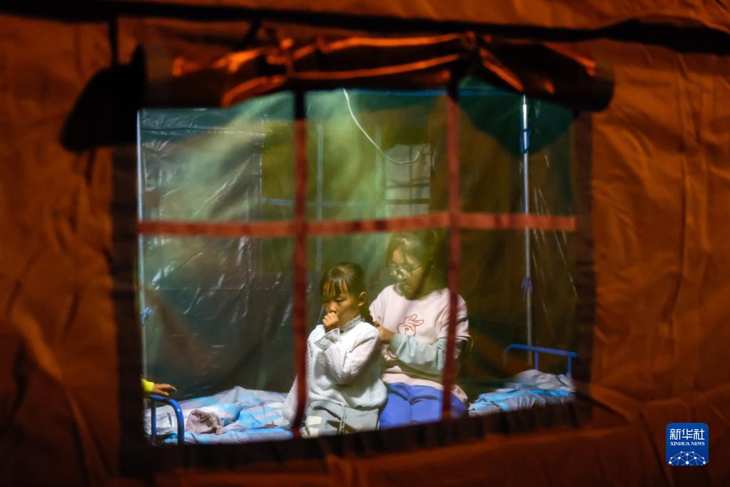 9月5日晚,在四川甘孜州瀘定縣磨西鎮受災群眾(zhong) 臨(lin) 時安置點,兩(liang) 名小女孩在帳篷裏。新華社 沈伯韓 攝