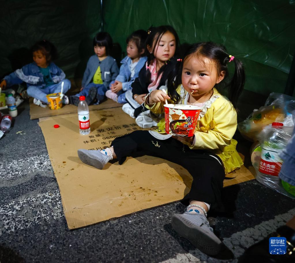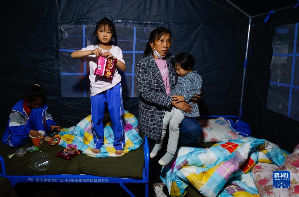9月5日晚,在四川甘孜州瀘定縣磨西鎮的受災群眾(zhong) 臨(lin) 時安置點,幾個(ge) 家庭的孩子們(men) 在一個(ge) 帳篷裏吃飯、休息。新華社 沈伯韓 攝