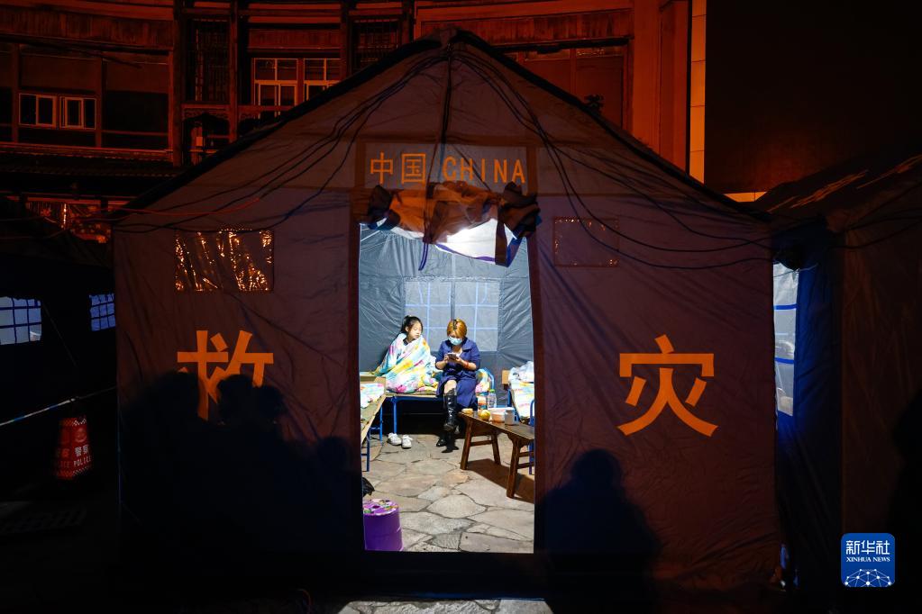9月5日晚,在四川甘孜州瀘定縣磨西鎮的受災群眾(zhong) 臨(lin) 時安置點,受災群眾(zhong) 在帳篷裏。新華社 沈伯韓 攝