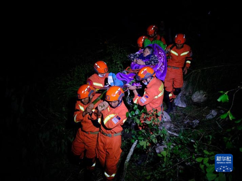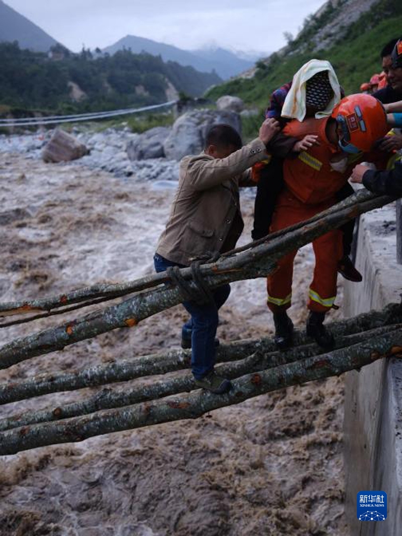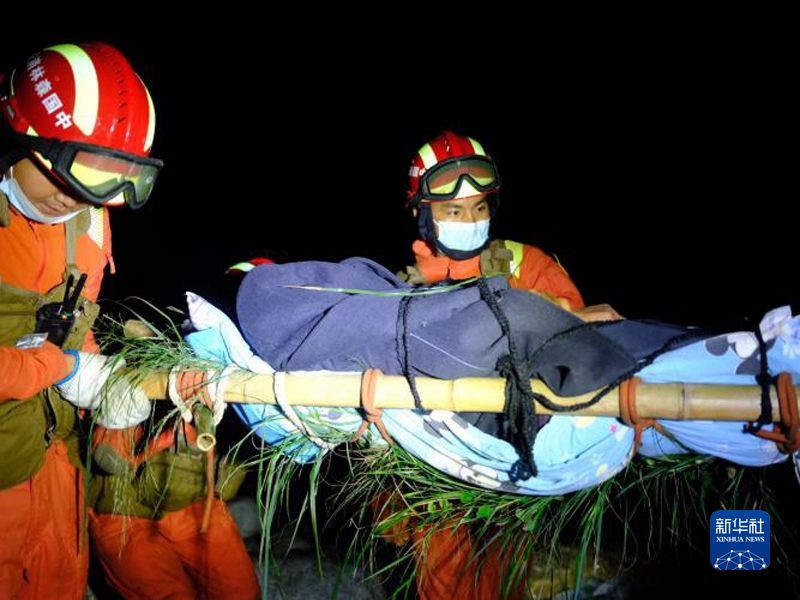 9月5日,四川省森林消防總隊甘孜支隊消防員在瀘定縣磨西鎮青崗坪村轉移群眾(zhong) 和傷(shang) 員。程雪力 攝