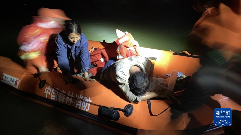 9月5日,在瀘定縣德妥鎮新華村,甘孜州森林消防支隊救援人員通過橡皮艇轉移受傷(shang) 群眾(zhong) 。魏紅攝