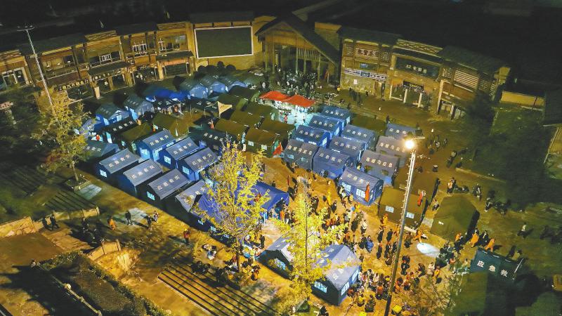 5日傍晚,甘孜州瀘定縣磨西鎮,臨(lin) 時安置點的燈亮了;雅安市石棉縣新民鄉(xiang) ,抗震救災指揮部的燈也亮了。