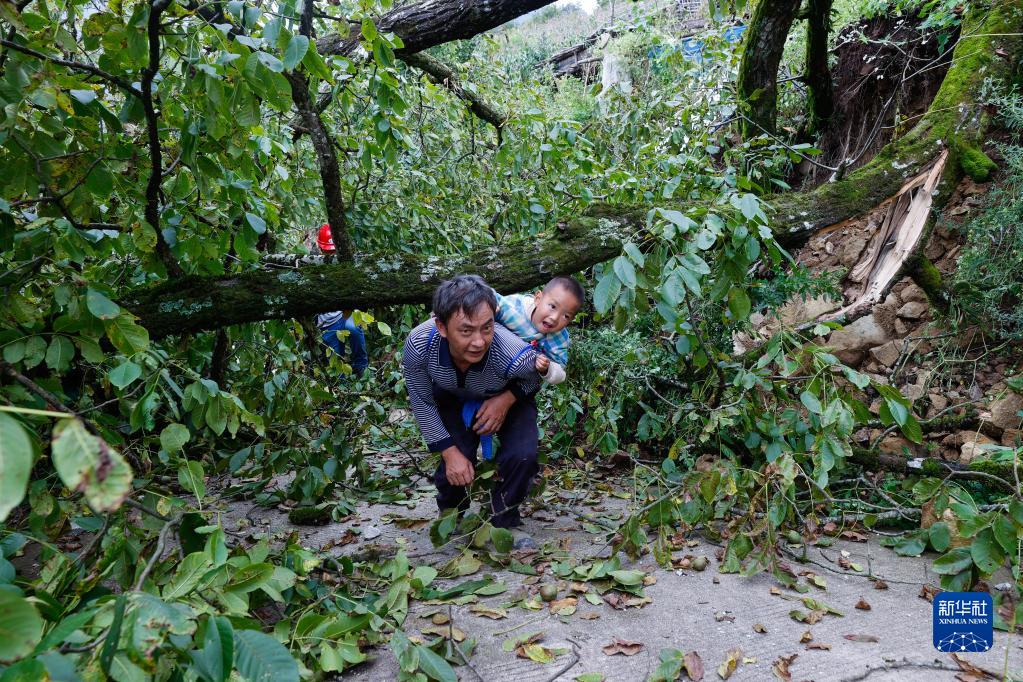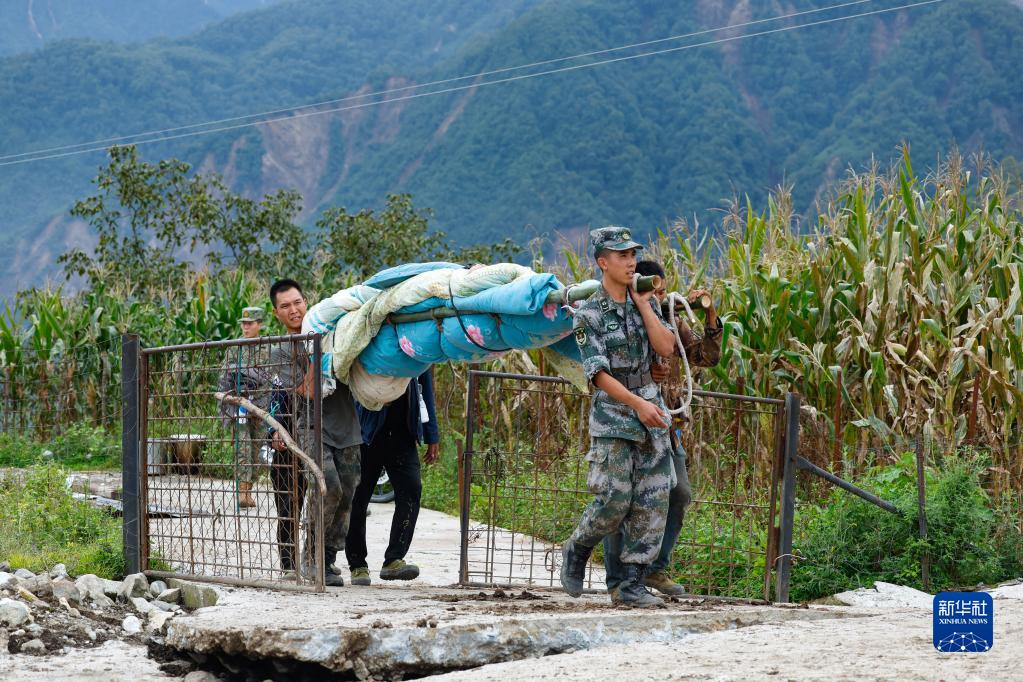 9月6日,瀘定縣得妥鎮灣東(dong) 村村民向外疏散。新華社記者 沈伯韓 攝
