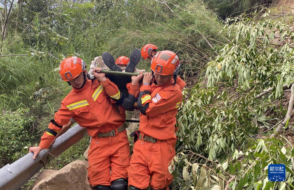 9月6日,四川森林消防總隊甘孜支隊消防員在瀘定縣得妥鎮紫雅場村轉運傷(shang) 員。新華社 魏紅 攝