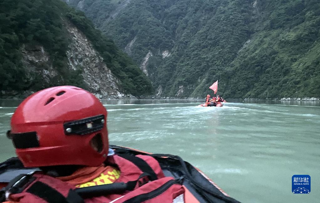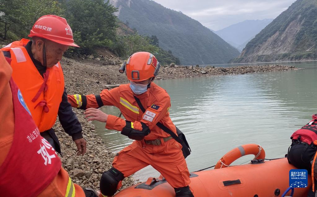 9月6日,四川森林消防總隊甘孜支隊消防員乘橡皮艇進入瀘定縣得妥鎮紫雅場村。新華社 魏紅 攝