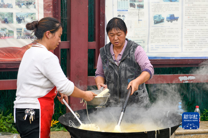 9月6日,在位於(yu) 石棉縣王崗坪鄉(xiang) 挖角村村委會(hui) 的安置點,村民在準備午飯。新華社記者 胥冰潔 攝