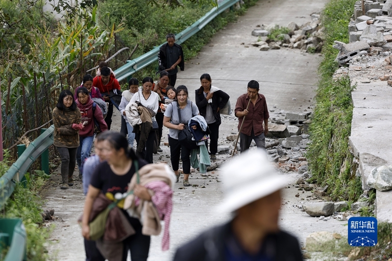 9月6日,得妥鎮灣東(dong) 村村民正在向外轉移。新華社記者 沈伯韓 攝